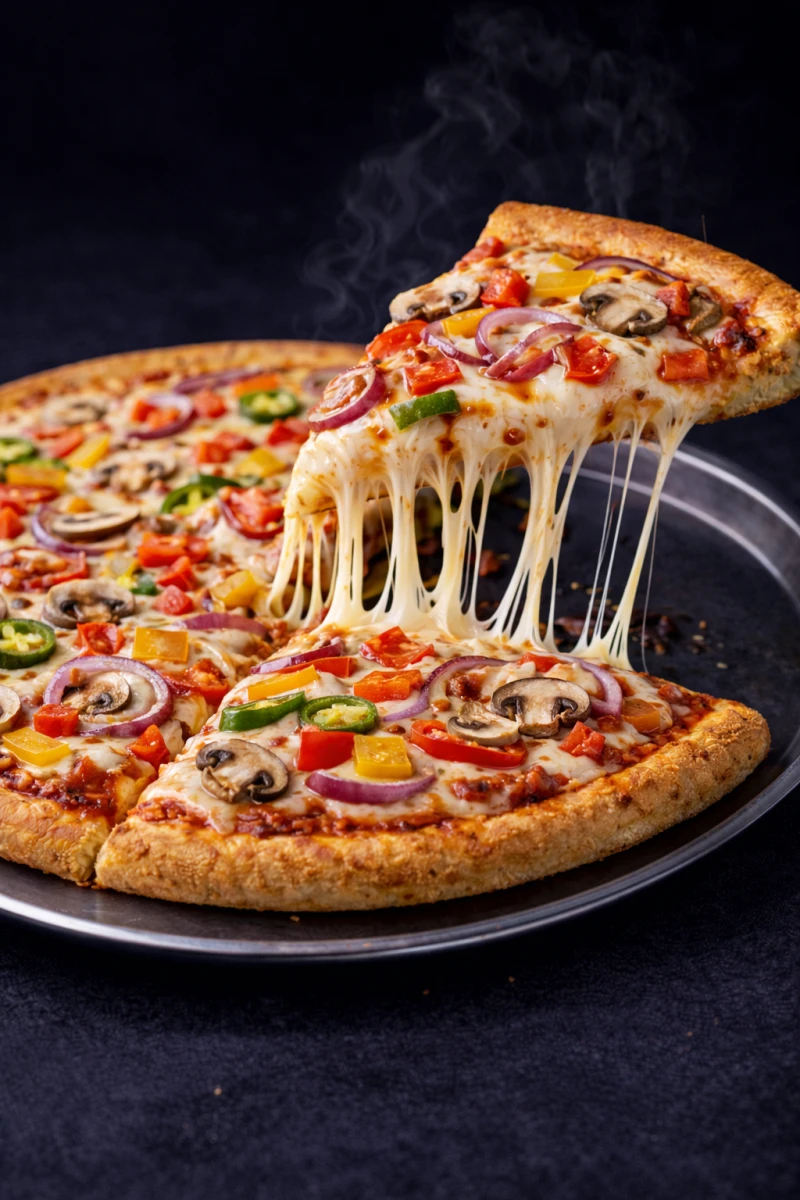 Откройте для себя яркую и сочную пиццу «Вегетариано», которая порадует вас гармоничным сочетанием хрустящего теста, сладкого болгарского перца, сочных томатов и ароматных шампиньонов. Нежный соус, сладкий лук и расплавленный сыр добавляют пицце изысканности и делают каждый кусочек настоящим гастрономическим наслаждением. «Вегетариано» — идеальный выбор для ценителей вегетарианской кухни!